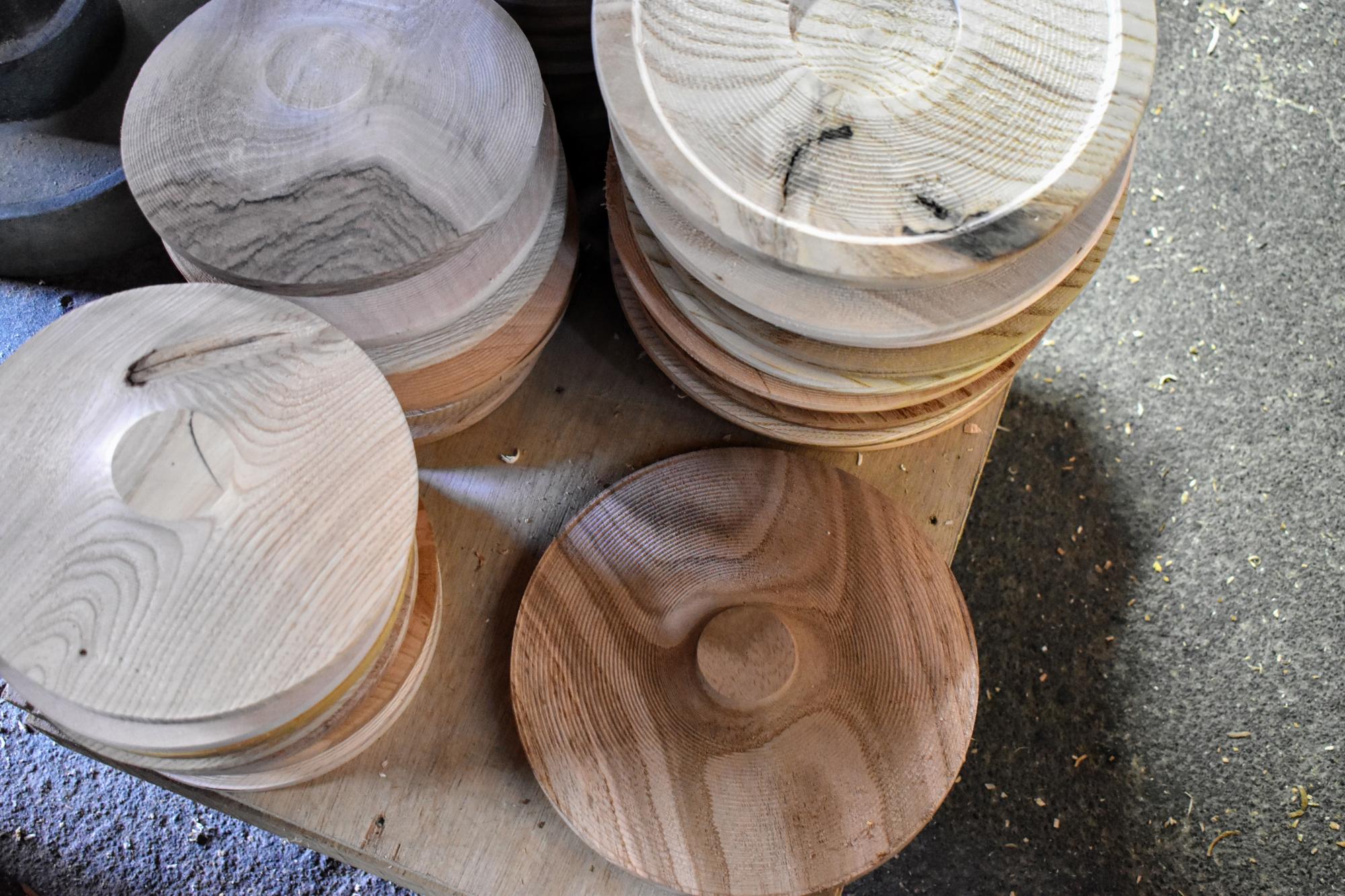 家具をつくるような大きな機械では加工できないような小さくなってしまった木もいくつか安全な加工方法があります。その一つがろくろ(お椀をつくるような)加工です。