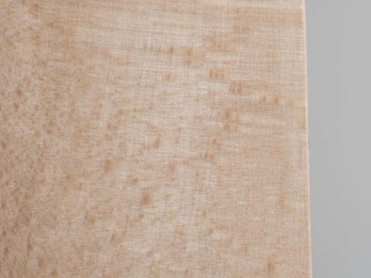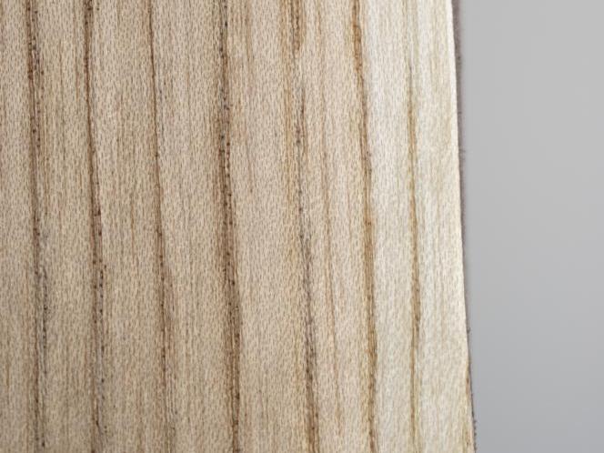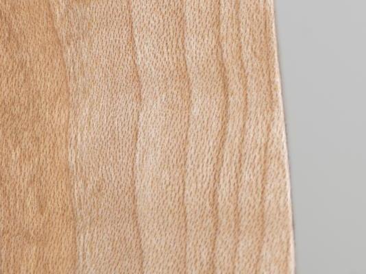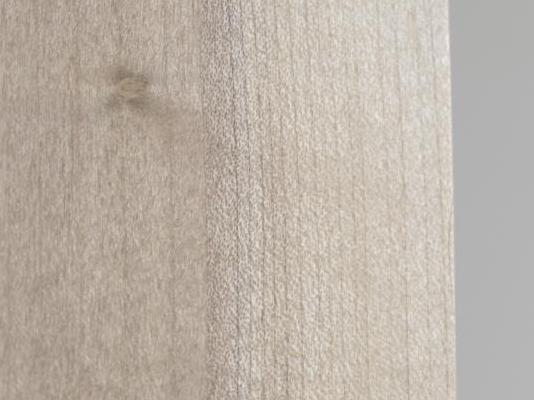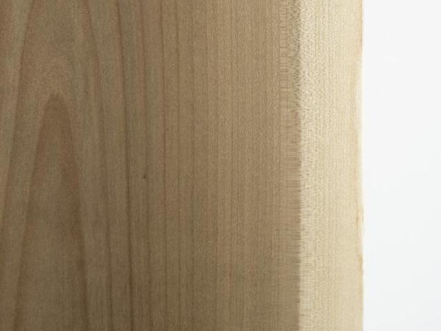 コルク質の内樹皮が目が覚めるほどのレモンイエロー。白太(辺材)と赤太(心材)はやや明瞭。個体差が大きく若い木は色が薄くライトイエローに近く材もとても軽いが老木になるにつれオリーブグリーンと変化し材も重たく堅くなる。経年変化でグリーンよりも茶が強くはなるが透明感がありグリーンの感じもどことなく残っている印象。色味的にはホオノキと似ているが散孔材と環孔材の違いもあるせいか印象はかなり異なる。