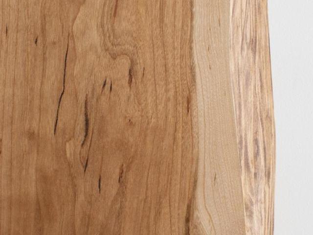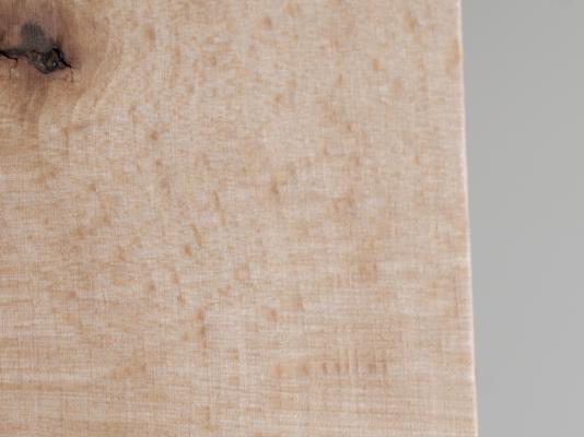 流通名は「ミズメ」「ミズメザクラ」 樹皮や木部がサクラに似ているため桜という名前が付くらしいが科も違う別物。樹皮にはサリチル酸メチルを含み湿布薬のスッとした匂いが特徴だが幹ではほとんど感じる事はない。材は重たく、木肌は密で滑らかでしっとりした印象。水がたわむような杢が特徴でどことなく艶っぽい。